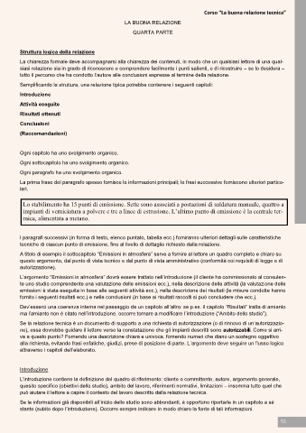 L’argomento “Emissioni in atmosfera” dovrà essere trattato nell’introduzione (il cliente ha commissionato al consulen-